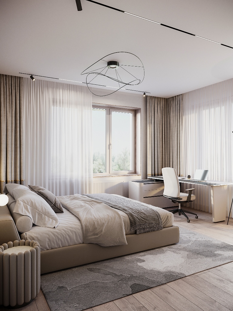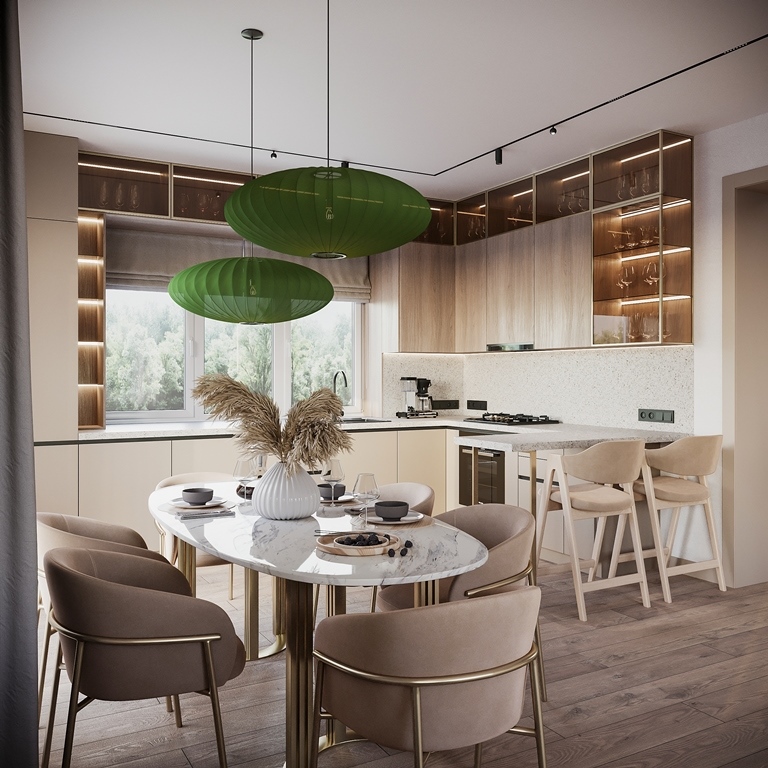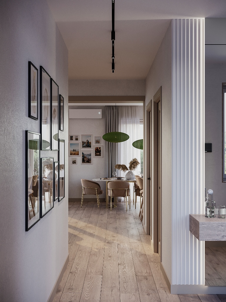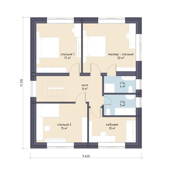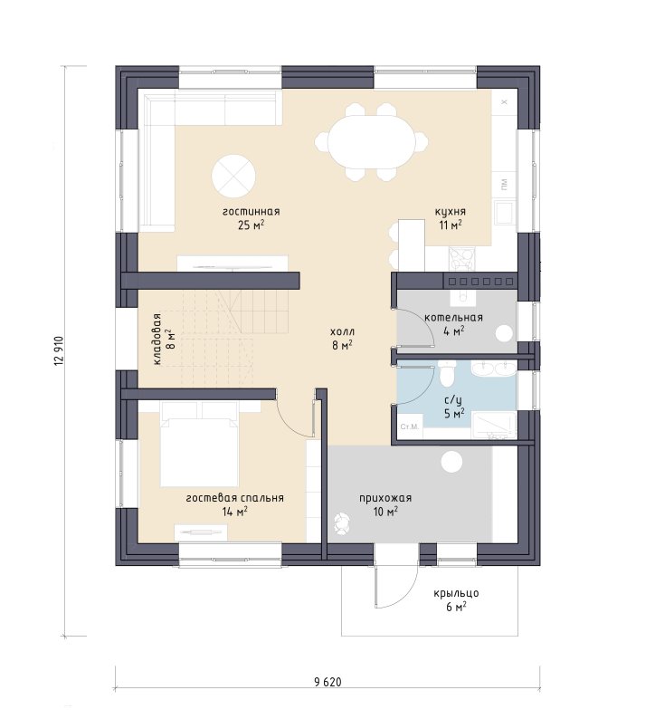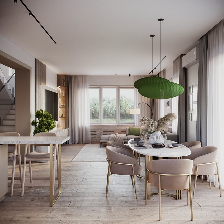 В доме 5 комнат, 3 санузла и просторная кухня-гостиная с выходом на летнюю веранду. Планировка дома легко разместит семью с двумя-тремя детьми и ещё найдется место для гостей