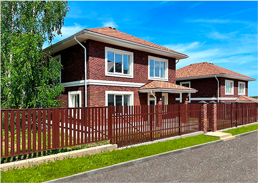Современный дом из керамического кирпича с надежным фасадом из керамики. Высокий класс энергоэффективности дома позволяет сохранять летом прохладу, а зимой уют и тепло.